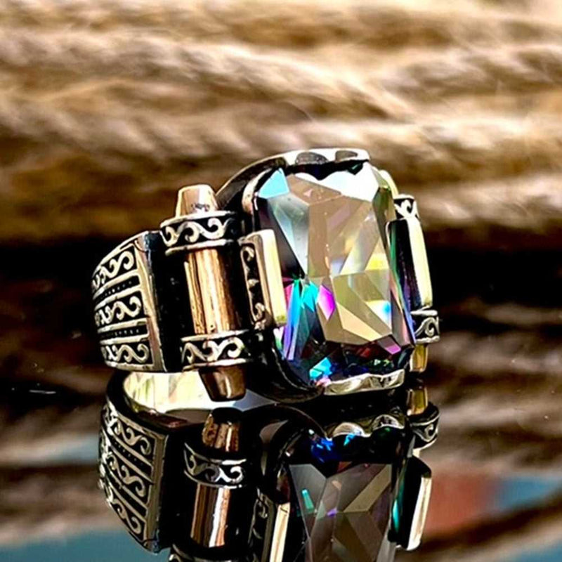 Alexandrite Mystic Topaz Pure Silver Men's Ring Elegant Design-Boutique Spiritual