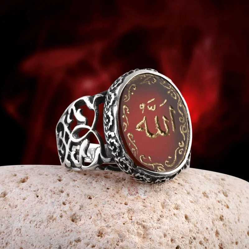 Divine Elegance: Our 'ALLAH' Handwritten Natural Agate Stone Ring is a true masterpiece, seamlessly blending with the captivating beauty of natural agate.