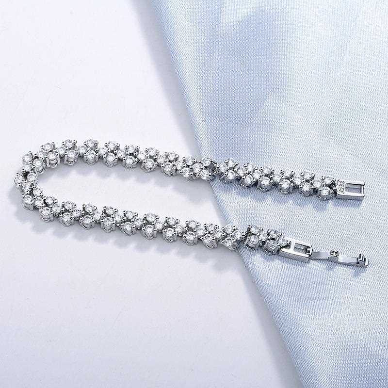 The bracelet is perfect for any special occasion, such as engagements, weddings, or even as a fashion statement. Show off your unique style and express your love and commitment with this gorgeous 14K white gold roman lab moissanite diamond bracelet.