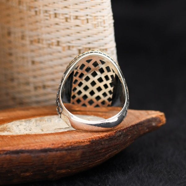 Islamic Black Aqeeq Stone Ring, Turkish Handmade Silver Men Ring